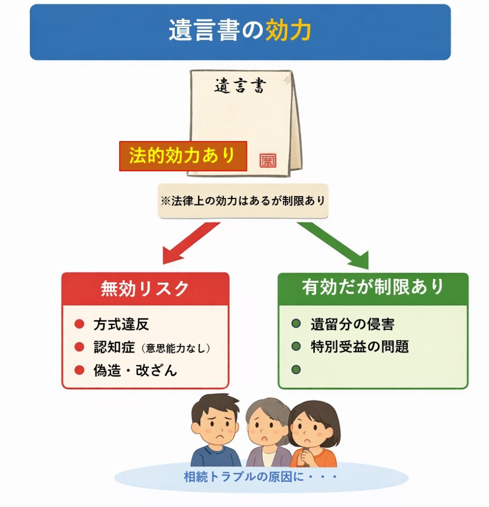 ただし、形式不備や内容の不明確さによって無効になるリスクが高いため、慎重な作成が必要です。